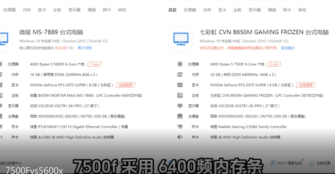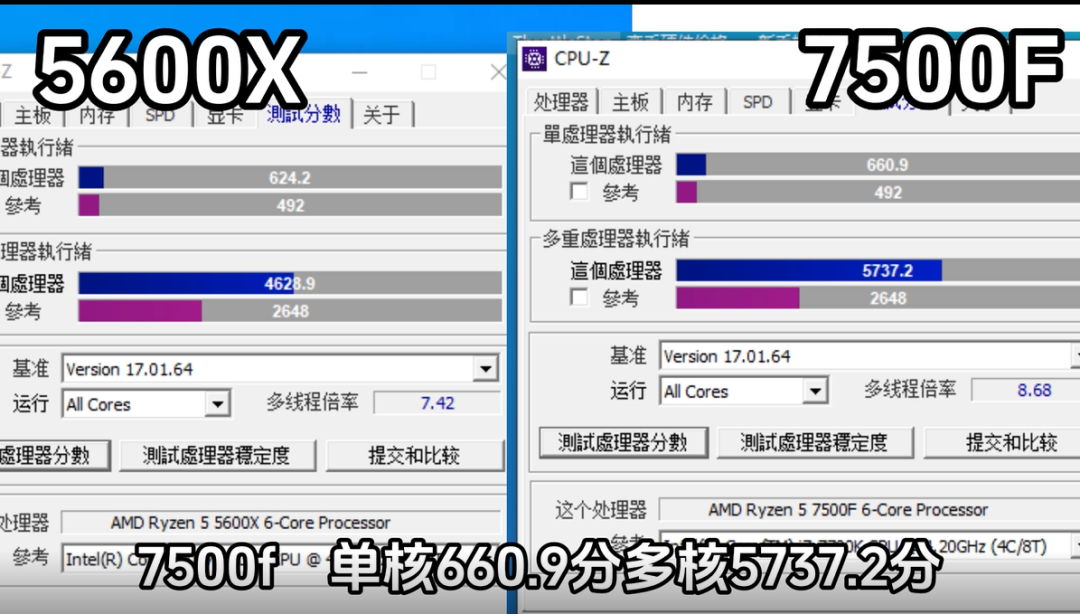 7500F非常强悍,无论是跑分和游戏帧数都全方位超过5600x,但是只谈性能不谈价格 纯属耍流氓,7500F和5600X价格差距比较小,但是你对比价格不能只看U的价格,你要算整套的价格。